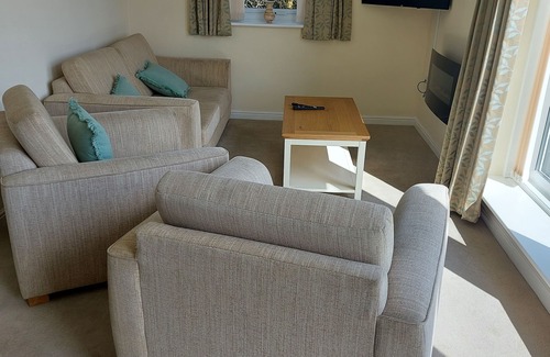 A beautiful 2 bedroom, 1st floor apartment, near the centre of Buxton. A huge floor to ceiling window, in the open plan living area, allows stunning views over meadows towards hills and woodlands. One double bedroom, with en-suite shower room. A second bedroom with 2 single beds and a large separate bathroom. Allocated free parking space. Fully equipped kitchen with fridge freezer, oven, hob, dishwasher and washing machine.