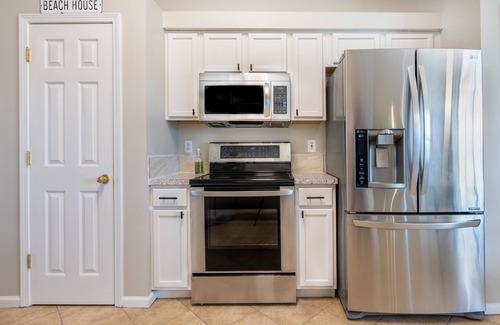 The kitchen is equipped with all basic equipment including a blender, Keurig machine, coffee machine.