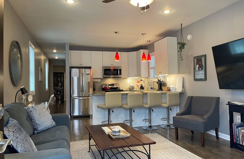 Centrally-located place on the east side of Cincinnati in historic Oakley. Walking distance to MadTree Brewing, multiple restaurants, major retail shopping/grocery stores, movie theater, & Oakley Square. Easy access to I-71 & Ohio 562. Less than 15 min to downtown. Nicely updated & appointed with a fabulous gourmet kitchen with eat-at counter that is open to spacious living room with 65” TV. High-speed wifi, washer & dryer in unit. Queen bed in main bedroom, full bed & desk in second bedroom. Baby bathtub, Graco stages small travel crib, Inglesina chair/tray, Bumbo chair/tray, outlet covers, cabinet door latches available. We require IDs.