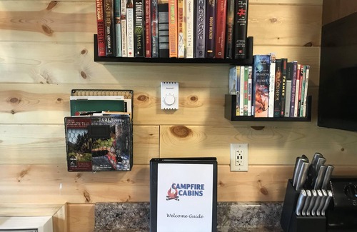 Main floor has 1 plush high quality queen bed & linens; table and chairs, 43" smart tv with blu-ray player & 50+ dvds. If you choose to bring your gaming system, an HDMI cord is provided. We also have a collection of books and board games if that is more your speed. Each cabin has a CELLULAR WIFI HOTSPOT, and excellent cell reception for Verizon customers. PLEASE NOTE: no cable or satellite available.