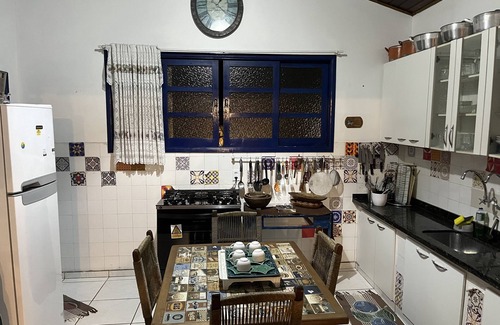 In the outdoor area we have covered barbecue, kiosk with hammock, showers for beach arrival, large garden full of trees and orchids, slackline for sportsmen and space for 07 cars or vans.