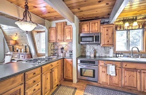 With mountain views, forest access, and a wraparound deck with plenty of seating, this vacation rental house hosts all the hallmarks for a classic Big Bear escape. Make yourself at home amongst 2 bedrooms, 2 bathrooms, and a loft. You might be tempted to kick back and warm up by the fire all vacation long, but don't forget to venture out and explore! Enjoy San Bernardino National Forest access on site where the kids can play in the snow or head over to Big Bear Resort for some sunshine skiing!