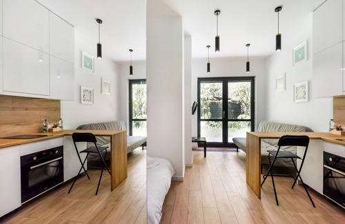 Best-rates for the Chłodna Square Studio starts from $75 per night with includes TV, Security/Safety, Bedding/Linens, Child Friendly, Internet, Wheelchair Accessible, Accessibility, Wellness Facilities, Fireplace/Heating, Kitchen, Laundry with all other facilities. Vacation Cottage™ provides a diverse array of lodging choices for every kind of traveler. We aim to pair each traveler with their ideal cabin, resort, or rental, ensuring a pleasant and satisfying stay with all necessary amenities.