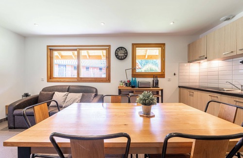 Boasting a beautiful view of the Alps, the chalet Belle Etoile - Val de Tamié with step-free access and interior is located in Faverges. The 60 m² property consists of a living room with a sofa bed for 2 people, a kitchen, 2 bedrooms and 1 bathroom and can therefore accommodate 6 people. Additional amenities include Wi-Fi, a TV as well as a washing machine. Furthermore, a table tennis table is available on the property. A baby cot and a high chair are also available. This accommodation does not offer: air conditioning. This chalet features private terraces, both open and covered, perfect for relaxing in the evenings.