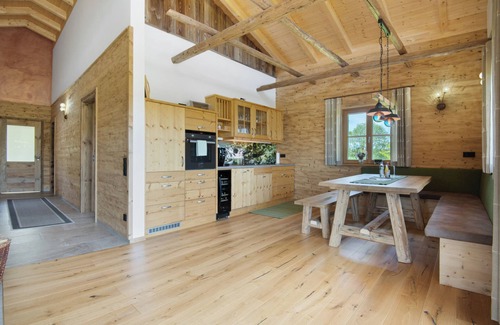 The chalets were built according to old carpentry and joinery skills. Furnished with the flair of traditional materials, such as stone, fine fabrics and wood that is over 300 years old, some of which is used again in the custom-made furniture.