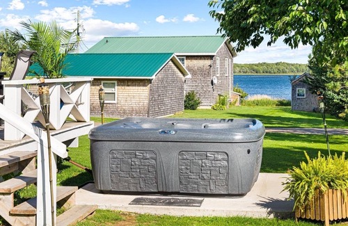 Fully equipped 2 bedroom water view beach cottage with an outdoor hot tub & fire pit. The cottage has a large front deck that has view to the Bay of Cocagne and only a short walk away. The outdoor area has a BBQ, sitting area and dining area. The house is fully furnished and kitchen is fully equipped.