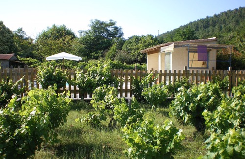 Chalet located in the Cévennes National Park (labeled "Esprit Parc") in the middle of a small family farm of 100% natural vines...Chalet (60M²) single-storey wooden frame (classified as furnished tourist accommodation). The layout is very functional...two separate bedrooms, full kitchen equipment, 80cm flat screen TV, WIFI Internet, network access for all mobiles.