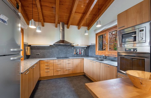 Spectacular house of 230 m2 in a garden of 1000 m2 located in the Valley of Ribes, built in stone, wood and steel, its orientation gives you fantastic views. For 10 people, it consists of one floor and a small kitchen-dining-living room in a single large room, with 4 bedrooms, two double, one twin and one quadruple (ideal for children). 3 complete bathrooms, attic with desk, large flat screen TV, audio equipment. Fantastic garden (1000 m2) private and intimate, ideal for lovers of relaxation, sport, tranquility, family or friends and for those seeking direct contact with nature. Very close to the ski slopes of La Molina-Masella, Vall de Nuria and 45 minutes from Cerdanya.