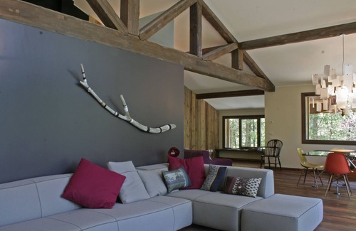 Built with eco-friendly materials, furniture with top design pieces and a lot of fantasy and creativity, come to our family chalet and enjoy our research in design and architecture. With 4 bedrooms, 4 bathrooms, 1 playroom, separate kitchen, garage, on 2 floors with huge living, fireplace, wi-fi connection, iPod connectivity in each room, terrace facing south, you'll have a relaxing holiday in Chamonix’s finest and more natural surroundings with a 1000sqm garden, great views on 360°. You wont easily find a self catered chalet with these finishing.