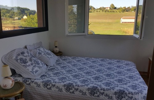 Located high up, the chalet enjoys breathtaking views of the surrounding countryside and the heights of Cazenac Castle. The sun is there on the East balcony in the morning and in the afternoon the West balcony.