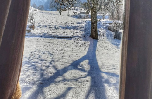 The cottage is in the heart of nature (but close to shops), in front of you meadows as far as the eye can see and the mountain all around you at 360 °.