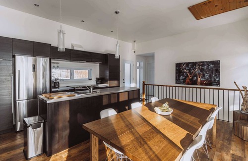During the summer season (from May to October), you have access to a private dock for swimming, and 2 kayaks, 1 canoe, and 1 pedal boat are provided. Chalet Kabana is located on a large, private wooded lot of 53,000 sq. ft making it a peaceful retreat away from prying eyes. High-speed unlimited Wi-Fi connection (Fiber 500 Go) is included.