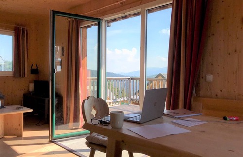 Looking to get away from it all? Enjoy a quiet holiday in our detached wooden chalet (75 m²) right by the ski slopes and hiking trails of Klippitztörl in Austria. Situated in a small village of holiday homes on the sunny south side of the Carinthian Alps, the chalet is ideal for summer and winter holidays. From the spacious terrace, enjoy a breathtaking panoramic view over the mountains and Lavant Valley.