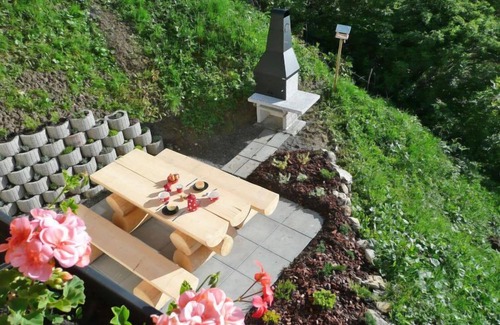 "Chalet La Poya", 4-room chalet 110 m2. Comfortable and tasteful furnishings: living/dining room with open-hearth fireplace, dining table, TV, flat screen, hi-fi system and DVD. Exit to the terrace. Open kitchen (oven, dishwasher, 4 ceramic glass hob hotplates, kettle, microwave, freezer, electric coffee machine, Capsules for coffee machine (Nespresso) extra, raclette grill, fondue Set (cheese)). Sep. WC. On the lower ground floor: 1 room with 1 double bed and satellite TV. Exit to the terrace. Open small alcove with curtain with 1 x 2 bunk beds. Exit to the terrace. 1 room with 1 french bed. Bath/shower/WC. Terrace furniture, electric barbecue. Marvellous panoramic view of the mountains and the countryside. Facilities: washing machine, dryer, hair dryer. Internet (WiFi, free). Please note: non-smokers only. Maximum 2 pets/ dogs allowed. Instead of an enclosed bedroom, some sleeping areas are located in an open-plan area (gallery, alcove, etc.).