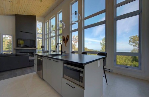 Le Chalet Ô Vitré, SPA is located in Les Éboulements, in the middle of the most beautiful attractions in the Charlevoix region. The privacy of a wooded area overlooking the St. Lawrence River, a few minutes from Baie-St-Paul, le Chalet Ô Vitré, SPA will charm you with its comfort with all the necessary amenities for a unique stay. You will succumb to the charms of Charlevoix in summer and winter alike. The region is an unequivocal outdoor destination. Let Charlevoix tell you about nature in its raw state. Cultural richness, the different routes and tourist circuits of this dream environment will amaze you. Whether on the roads of the river, mountains, arts and crafts or motorcycle tourism circuits, you will be charmed during your getaway.