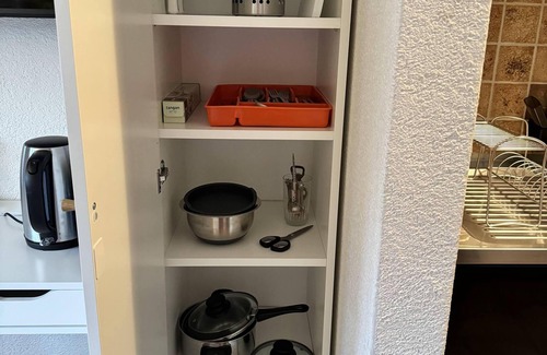Please no outside shoes inside the apartment. You may place your outside shoes next to the white coat rack, or in the wardrobe, or outside the apartment door. House shoes/slippers are provided.