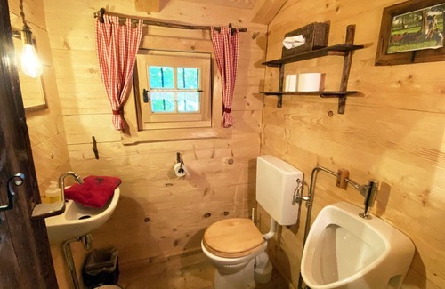 Spend your vacation in Asten, in the beautiful Rupertiwinkel. This rustic organic alpine hut is located right on the edge of the forest, facing south with a view of the mountains. It was built from a 250-year-old "Troadkasten" (granary) using only healthy, ecological building materials. Great importance was attached to sustainability.