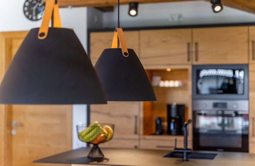 When designing the rooms, attention was paid to creating a cosy atmosphere using high-quality natural materials. The high, open and light-flooded living/dining area makes hearts beat faster. You can prepare your meals in a well-equipped kitchen, sit down in the dining area and spend sociable evenings together. To complete the picture of luxury and comfort, there is a relaxation area with a Finnish sauna, a rain shower and a relaxation room.