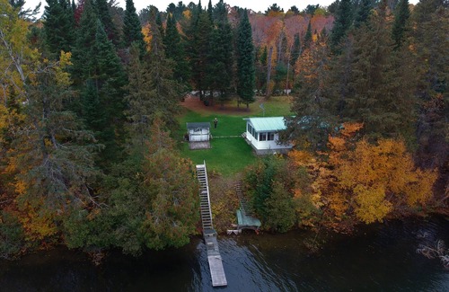 Vous bénéficiez d'une vue exceptionnelle sur le lac avec aucune maison ou chalet sur la rive opposé. Pas de voisin de l'autre coté du chemin et, de chaque coté, la résidence des propriétaires et d'un membre de sa famille. Le grand terrain vous donne l'opportunité d'être à l'ombre des grands arbres ou au gros soleil. Beaucoup d'espace pour s'amuser à des jeux extérieurs ou pour faire courir toutou. L'endroit est parfait pour vous évader des bruits urbains et le soir venu le silence est encore plus impressionnant surtout quand le huard nous chante la sérénade. Il n'est pas rare, tôt le matin, d'observer le grand héron pêcher tout à coté du quai.