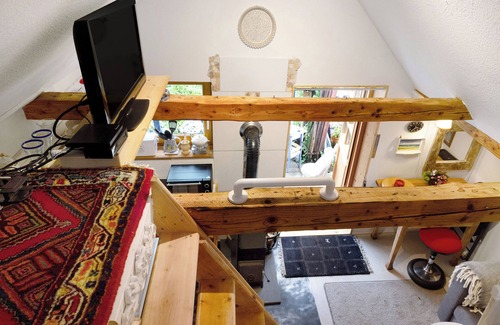 The Tinyhouse apartment is located in the heart of Schleswig Holstein. From here you can reach the North Sea or the Baltic Sea in 45 to 60 minutes by car. But also Hamburg, Kiel, Flensburg/ Denmark, or the East Frisian Islands are not far away. The Tinyhouse vacation apartment has a living / dining room, bathroom, a small office with internet / fiber optic connection. There is a large sleeping loft upstairs, which is accessible via a small wooden staircase. There you can crawl into the cozy wide bed, like into a protective tent. Through the windows in the sleeping loft you can look at the night sky with its many stars and fall asleep. Here in the village it is very quiet and calm, even at night. In the apartment you have fiber optics, internet, SAT dish. The bathroom has a shower. The apartment has its own entrance. Everything is very well insulated, so you will be warm even in cool temperatures. A small kitchenette allows you to prepare delicious dishes. There is an induction hob with two burners and a lot of kitchen utensils that you can use. In winter you can bring additional coziness into the apartment with the wood stove (you can buy wood from the landlord). You rent an apartment in a NON-SMOKING HOUSE! If you still want to smoke, there is an ashtray outside on the little table of the veranda. Pets please bring only after consultation, because in the house itself already live four cats and a dog.