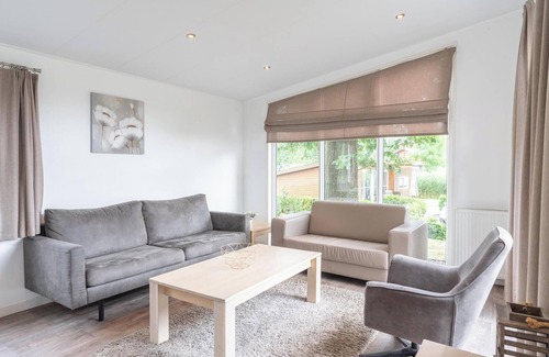 Pavilion 6 is a ground floor detached chalet. This holiday home is suitable for 6 persons. In the living room you will find a sitting area with television and a dining area. The kitchen is equipped with a dishwasher, microwave and coffeemaker. There are 3 bedrooms: 1 bedroom with 1 double bed and 2 bedrooms with 2 single beds or a bunk bed. This chalet also has a bathroom with a shower. There is a separate toilet in the hall. Outside is a terrace with garden furniture. At this chalet you can park one car and there is free wifi. Please note, there may be steps to the house.