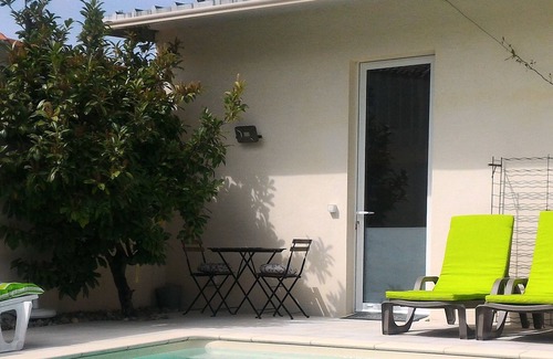 This accomodation in Talence is perfect for your escape. Get out of bed and dive into the pool... With 1 queen bed in mezzanine (Warning : sloping ceiling, impossible to stand on) and 1 sofa bed (1 person), This cozy retreat, in a middle of a garden, offers heating, wifi, outdoor kitchenette and AC. The bathroom features a big shower and a wc. Feel at home in this independant space and enjoy the possibility to park your car for free. Located in a residential area, close to the tramway direct to Bordeaux (25mn) and city of wine (45mn). University campus and Pessac Leognan vineyards (château Haut Brion) are also very close. Direct bus to Bordeaux railway station (St Jean). Feel free to reach out to us during your stay - we're happy to suggest local spots (good restaurants, Arcachon and dune du Pyla).