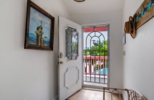 The living and dining areas, along with the kitchen, open onto the big front deck. In season, most guests like to keep all the French doors open for a real sense of outdoor living. The front deck is a great spot for dining al fresco while enjoying views of happy travelers out for a taste of the sun, and even a lovely view of Tampa Bay across the street. A heated pool and hot tub are perched canalside, with a large open patio that's the perfect place for a picnic. An upstairs deck overlooks this area, offering lovely views down the canal to Bimini Bay.