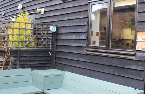 Outside is a charming courtyard garden fitted out with bench seating on three sides and a dining table. The courtyard is something of a sun trap (although there is ample shade provided by the pretty wisteria) and is perfect for enjoying an outdoor meal, drink or just relaxing with a book.