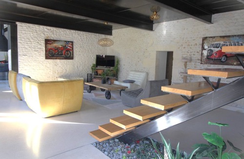 Charentaise with an industrial look is located in Colombiers. Charentaise with an industrial look provides accommodation, featuring Pool, Security/Safety, Wellness Facilities, among other amenities. This Villa features Pool, Security/Safety, Wellness Facilities, to make your stay a comfortable one.