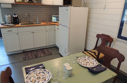 The cottage offers all of the amenities that you’ll need for a great vacation including a queen bed, a sofa sleeper, a full refrigerator, microwave, toaster oven, cable and wifi, grill, fire pit and private courtyard.