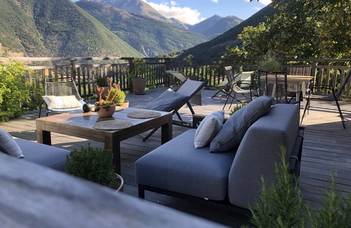 Downstairs, you will find the charm of old stone and vaulted rooms. Upstairs, you will find the style of the modern chalet. Located in an exceptional setting, the house offers a wonderful view of the mountains and a clean air, in one of the sunniest regions in France. You will be in harmony with nature, relax, and rest while listening to the sound of a small river. There are hiking trails starting directly from the property and you can do many sport activities in the neighbourood.