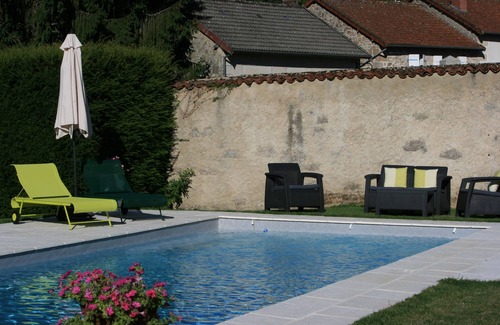 In the heart of the Ambazac mountains, the house built in the 18th century is located in the center of the village, next to a 13th century church and opens onto a 2000 m2 garden enclosed by walls with a heated and secure swimming pool (shutter electric and access grid).