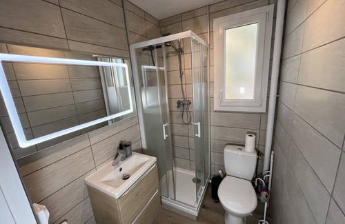 Located in Caen, this 1-bedroom, 1-bathroom apartment lets you experience it all. Fans of nature and the outdoors will love being 29 minutes by car from Cabourg Beach and 32 minutes from Juno Beach. Make short work of the 4-minute drive to Caen Memorial or the 6-minute drive to Zenith de Caen.