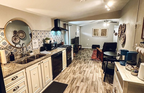 Welcome to your serene getaway in Springtown, Texas! This charming one-bedroom, one-bath apartment offers a peaceful retreat with a private entrance for your convenience. Enjoy a fully equipped kitchen, perfect for preparing meals during your stay. Stay connected with complimentary fast WiFi and take advantage of the separate laundry room for added comfort. Centrally located area, you'll have easy access to local attractions, groceries, and eateries that are convenient. This apartment is located in a brand new, fully paved, secure, gated RV park with a park manager who lives onsite.