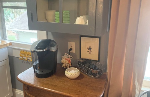 This one bedroom 1926 charmer located in chill, eclectic, historic neighborhood, Lindley Park features two queen beds (one is a Murphy Bed in the living room), child-size bed off the bedroom, office niche, and small full kitchen and coffee/tea station.
