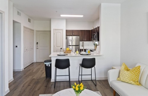Get ready to relax in this lovely 1-bedroom apartment in Frisco. This amazing property features a cozy living room with a sofa bed comfortable for sleep perfect for unwinding after a day of exploring. With amenities like AC, WiFi, work space, fitness room, pool, cooking essentials , coffee maker , guests will feel right at home. Enjoy all the beautiful fun and adventures experience Frisco has to offer when you stay at our place. Accessible to multiple restaurants, movies theaters, shopping center and mall.