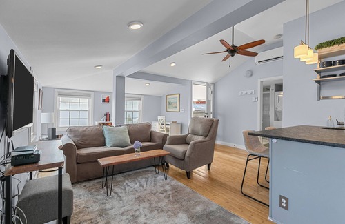 Located in Portsmouth, this delightful 1-bedroom cottage offers a cozy living room with a sofa bed for extra guests. With amenities like AC, WiFi, washer/dryer, and a fenced yard with a covered porch and gas grill, guests can relax and unwind in this marvelous space. Located just steps from Island Park's beaches and dining, this makes for the perfect summer getaway! We hope you'll enjoy your stay at our cottage.