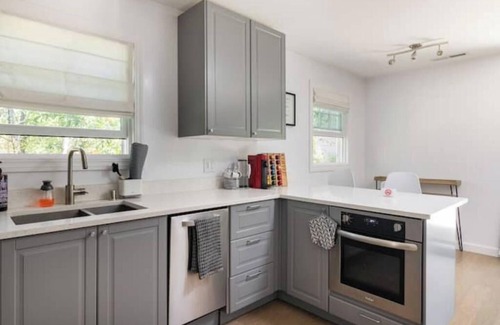 We feature a full kitchen with gas cooktop and dishwasher. Enjoy our fast and reliable WiFi, smart TV for streaming, heating and Air Conditioning and a dedicated desk workspace. We have a newly installed battery back up system with solar for any power outages. All soaps and detergent provided for the dishwasher and washing machine (free and clear). Nespresso coffee and espresso maker with pods provided as well. We are one block from The Devonshire Little Store for basic convenient store items. They also make deli sandwiches and have a Mitchell’s scooped ice cream bar.