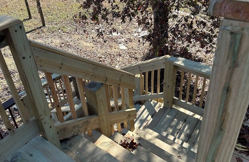 This is an upstairs unit with a big deck where you can unwind after work. This house is close to shops and restaurants and only within minutes to a hospital. You'll get the convenience of a city with rural setting.