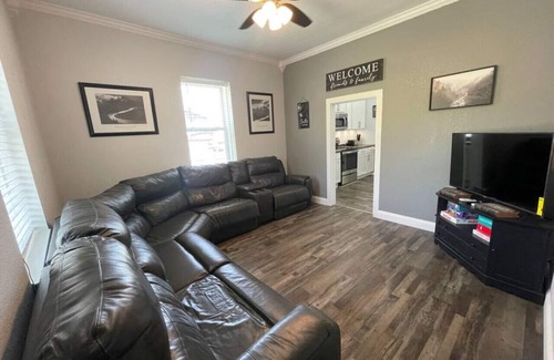 The fully equipped kitchen includes a stove, refrigerator, microwave, toaster, coffee pot, pots, pans, dishes, silverware, and utensils—everything you need for a comfortable stay. Whether you're exploring local sights or enjoying time indoors, this home offers the perfect blend of charm, convenience, and comfort.
