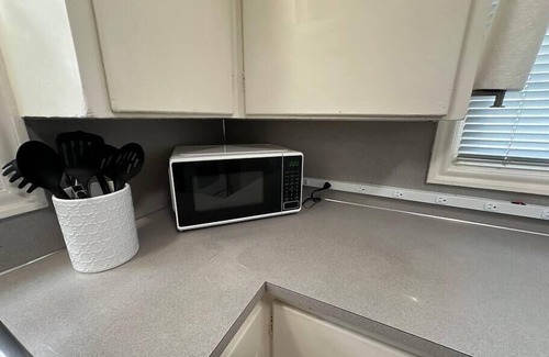 Fully equipped with oven, range, microwave, refrigerator, and dishwasher. Stocked with cookware, utensils, dishes, and basic spices. Coffee maker and tea kettle included.