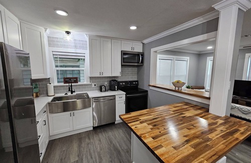 Fully Equipped Kitchen – Cook with ease in the butcherblock countertop kitchen, stocked with all the essentials.