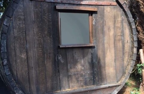 Your cabin is a cosy authentic Calvados barrel fitted with twin beds. Eco friendly it has solar charged 12volt lights. A small storage area beneath the beds. A charming deck with chairs & table