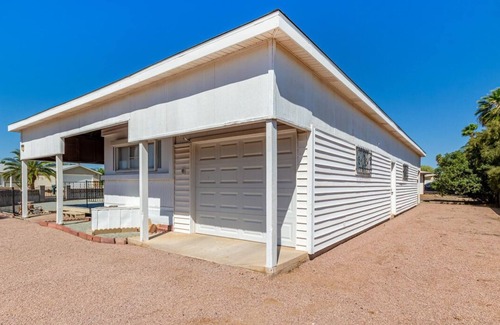 Located in Mesa, enjoy what this 2-bedroom mobile home has to offer. With 1 queen bed and 1 full bed, guests can relax in comfort. The property features on-site laundry, remodeled, large covered patio, iron, hair dryer, WiFi, heating, and AC. The 1.5 bathrooms are equipped with a shower and hair dryer. Experience the magic of Mesa at our mobile home. Golf at the public course on site. Moose Lodge also on-site. Quiet and comfortable. There is also an attached one-car garage.