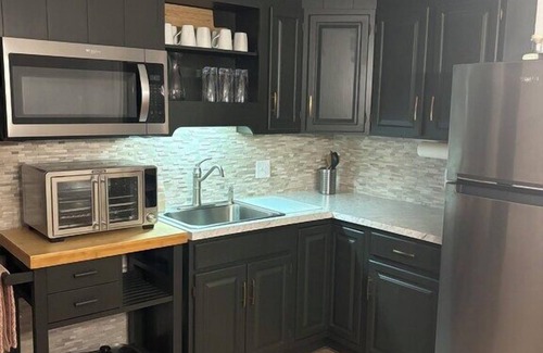 This is a fully, furnished lower level apartment,with a private keyless entry.Lots of natural light shine through the windows ,giving the space a light and airy feel.This space boasts two bedrooms each with a queen size bed.Each bedroom has a full closet.Pack and Play available along with children’s toys and books.Across the hall is a full bathroom,with a shower and tub combo,and is stocked with towels,washcloths,soap,shampoo,and conditioner.Enjoy central air,heating,Wi-Fi,and smart TV in the Living Room.A fully functional Kitchen is included with a microwave,refrigerator,oven and Electric Skillet,Kuerigg Coffee Maker.A round table anchors the dining space,with four chairs,place settings,Dining utensils,such as plates,plastic ware,and cups are provided,in case you prefer to eat in.