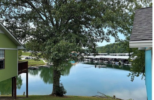 Your Tims Ford Lake adventure begins at this charming two bedroom cabin snuggled in a picturesque cove. Get cozy in your living room featuring a kitchen, comfy sofa and eating area. The kitchen has full size appliances for preparing meals. 3 queen size beds and a full bathroom stocked with linens and towels for your comfort. Enjoy amazing sunsets and starry nights on your private deck. We also offer air conditioning, heating and WiFi. Enjoy a dinner prepared on the grill just steps from your front door while soaking in the tranquil lake views. Want to enjoy some lake fun? You can rent a boat just a short walk down the hill at Tims Ford Marina. We hope you enjoy our amazing property and all Tims Ford Lake has to offer.