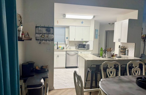 Located in Hampstead, this condo is an Ocean Life Paradise. Unit 412 has 2 bedrooms, including a master bedroom with a queen bed, and available pack n play crib. The second bedroom has a triple bunk bed with two twin beds, and a full bed. There area two full bathrooms equipped with all the essentials. The living room space features an additional sleeping area with a queen hide-a-bed inside the larger sofa, linens are in the front closet. A fully equipped kitchen with full-size appliances (stove/oven/dishwasher/toaster/microwave/refrigerator) and various utensils along with multiple pots and pans are provided. Free WIFI, a Firestick TV, multiple dining areas, and blackout cooling curtains are in all of the rooms. The main bathroom provides a stand-up shower only. The master bathroom has a toilet closet along with a shower over tub inside in the toilet closet. In the hallway there is a full-size washer and dryer with soap pods and dryer sheets. There are several board games, card decks, puzzles, a treasure chest full of toys, and much much more. Including beach towels, toys and outdoor blankets for your use while our guest. Experience an Ocean Life Paradise in Hampstead at our fabulous condo.