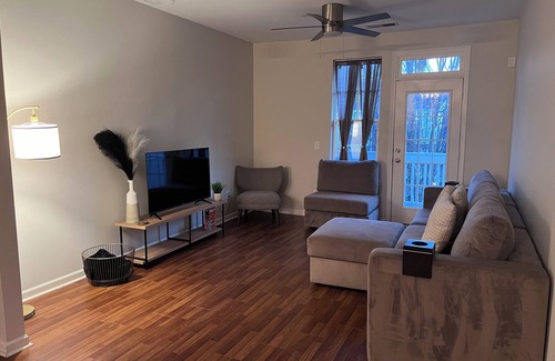 Your home away from home in Charlotte with 2 bedrooms featuring 2 queen beds. This fantastic condo offers all the essentials for a comfortable stay, including WiFi, AC, and a washing machine. The gorgeous interior will make guests feel right at home, and we'll be available to answer any questions while you stay at our place.