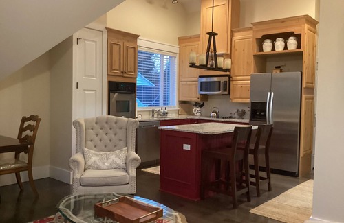 Other things to note: THIRTY-DAY MINIMUM STAY. The house is a separate building over a three-car garage and has one flight of stairs.