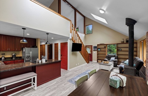 This north end Vashon house boasts 2 inviting bedrooms, one with a queen bed and the other with two double beds. The bathrooms are equipped with a shower, bathtub, and a hairdryer. Guests can enjoy amenities like air conditioning, WiFi, and a washer/dryer during their stay. The house has a private yard despite it's proximity to public transportation and a 15 minute walk from the ferry. Deer, squirrels, birds and raccoons frequent the spacious wooded yard, and there are spacious decks on the front and back of the home. Generous off street parking for 2 vehicles. We hope you enjoy what our place and Vashon has to offer.